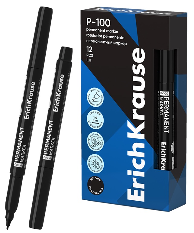 Permanentinis žymeklis P-100, ErichKrause, 1.0 mm, juodos sp.