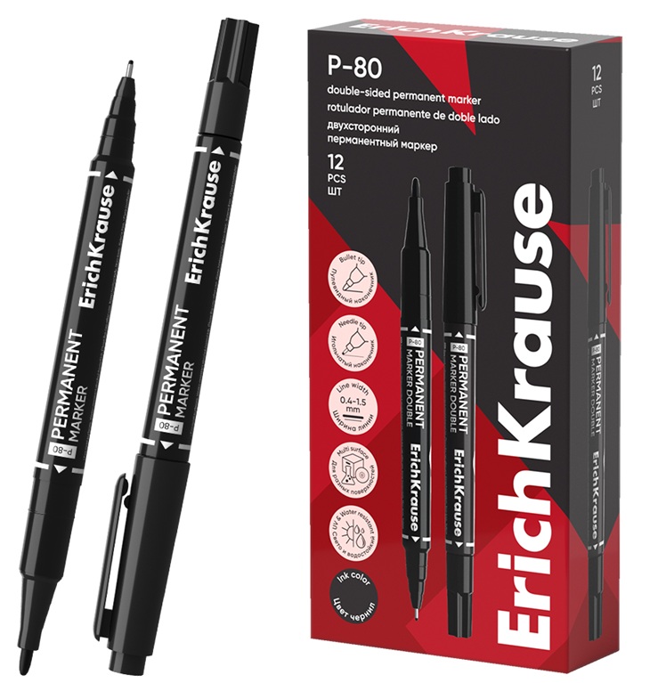 Dvipusis permanentinis CD/DVD žymeklis P-80, ErichKrause, 0.4-1.5 mm, juodos sp.