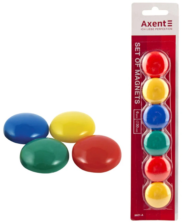 Magnetai AXENT, 30 mm, 6 vnt., įvairių sp.