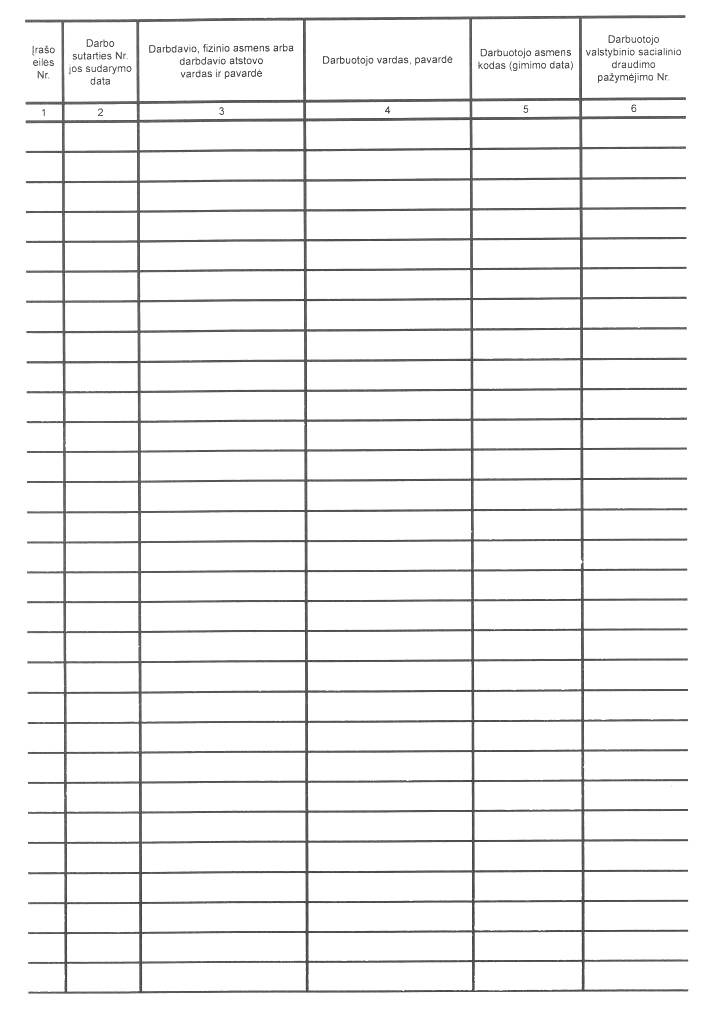 Darbo sutarčių registravimo žurnalas, A4, 12 lapų