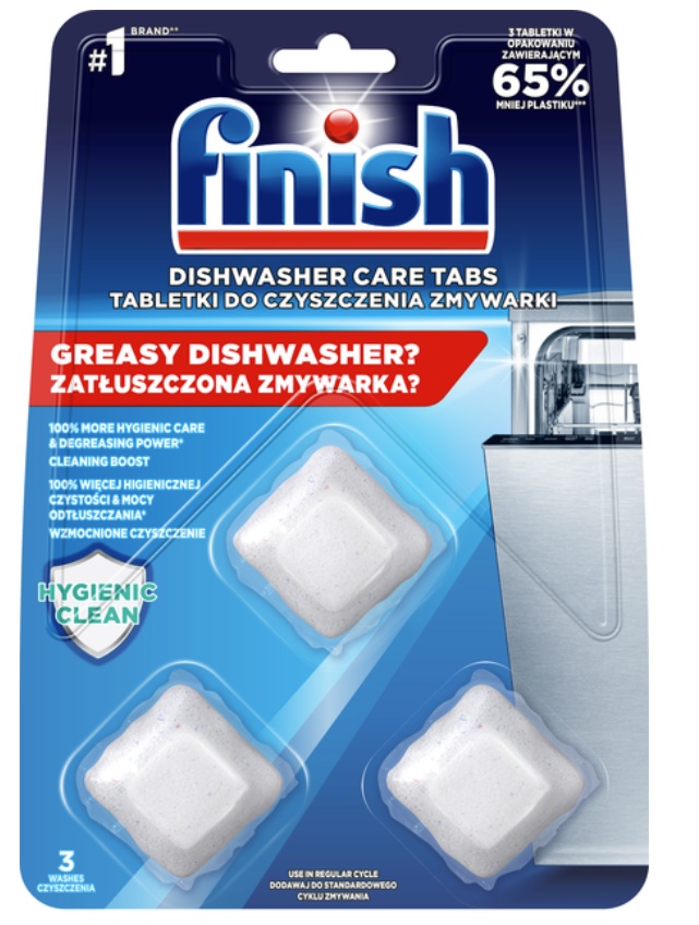 • indaplovė veiks visu efektyvumu jei bent kartą per mėnesį naudosite Finish indaplovių valymo tabletę;