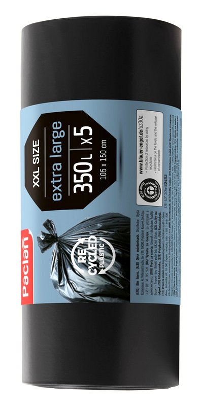 Šiukšlių maišai PACLAN, 350 litrų, 5 vnt., 60 mkr, LDPE plastikas, juodos sp.