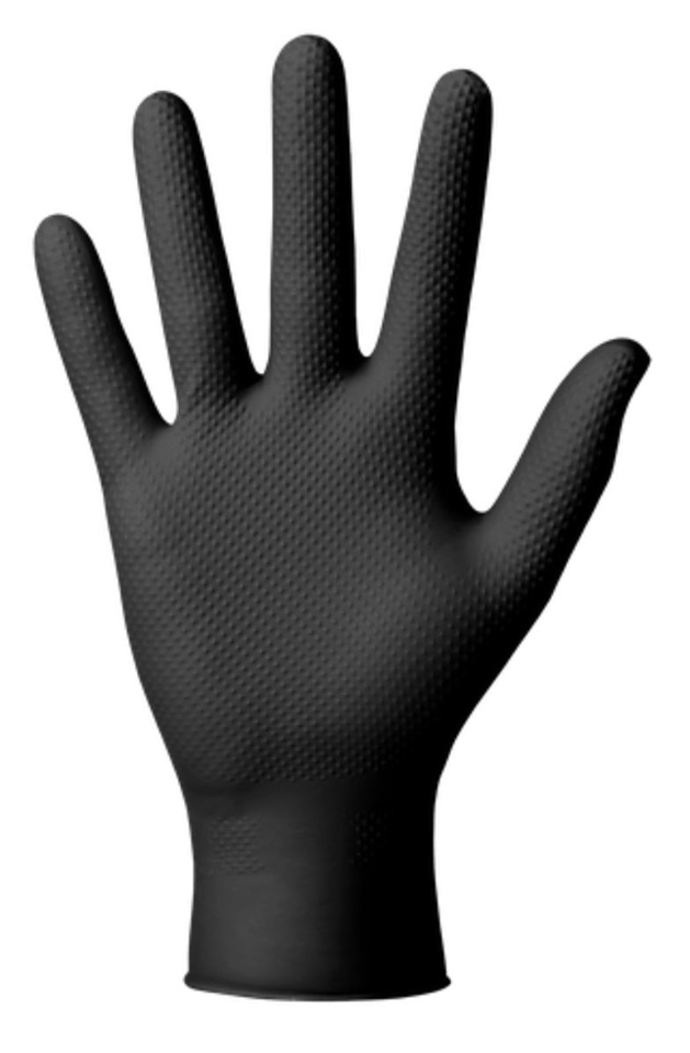 Vienkartinės nitrilinės pirštinės MERCATOR GoGrip Black, L dydis, juodos sp., be pudros, 50 vnt.