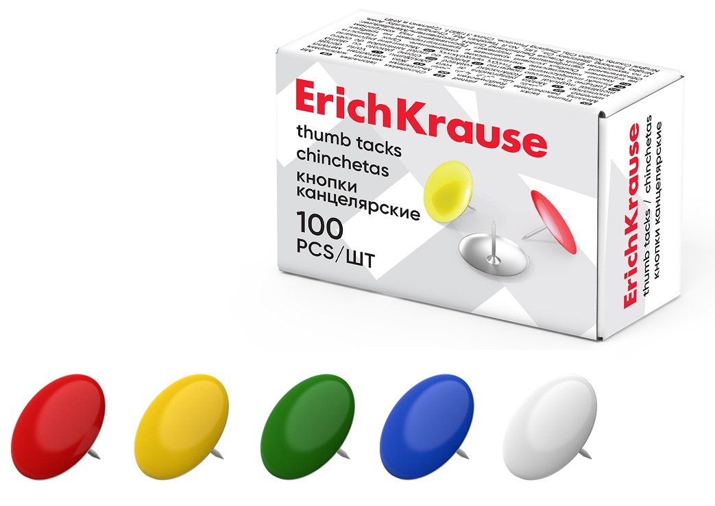 Spalvoti smeigtukai, ErichKrause, 7mm, 100 vnt., metaliniai, įvairių sp.