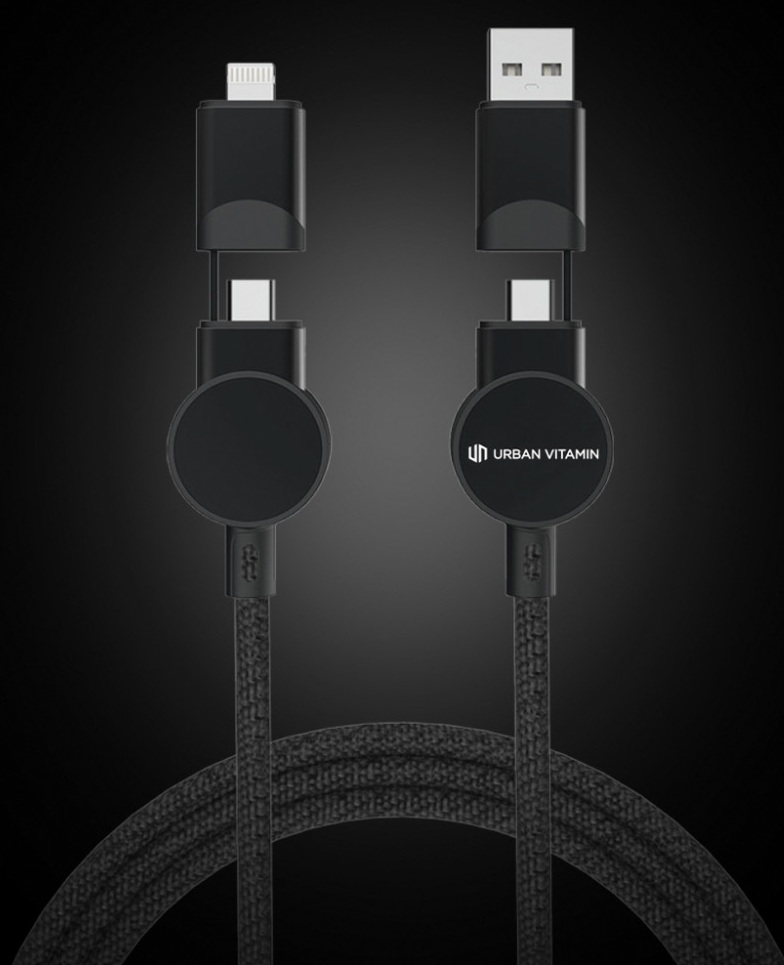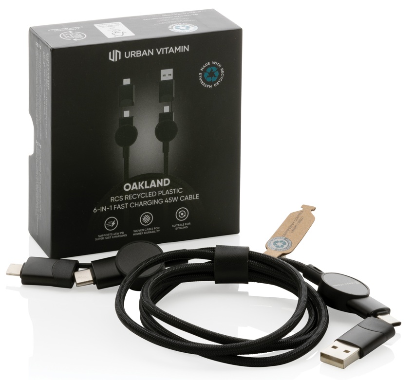 Greito įkrovimo laidas OAKLAND, Urban Vitamin, 6-in-1, 45W, 120 cm, juodos sp.