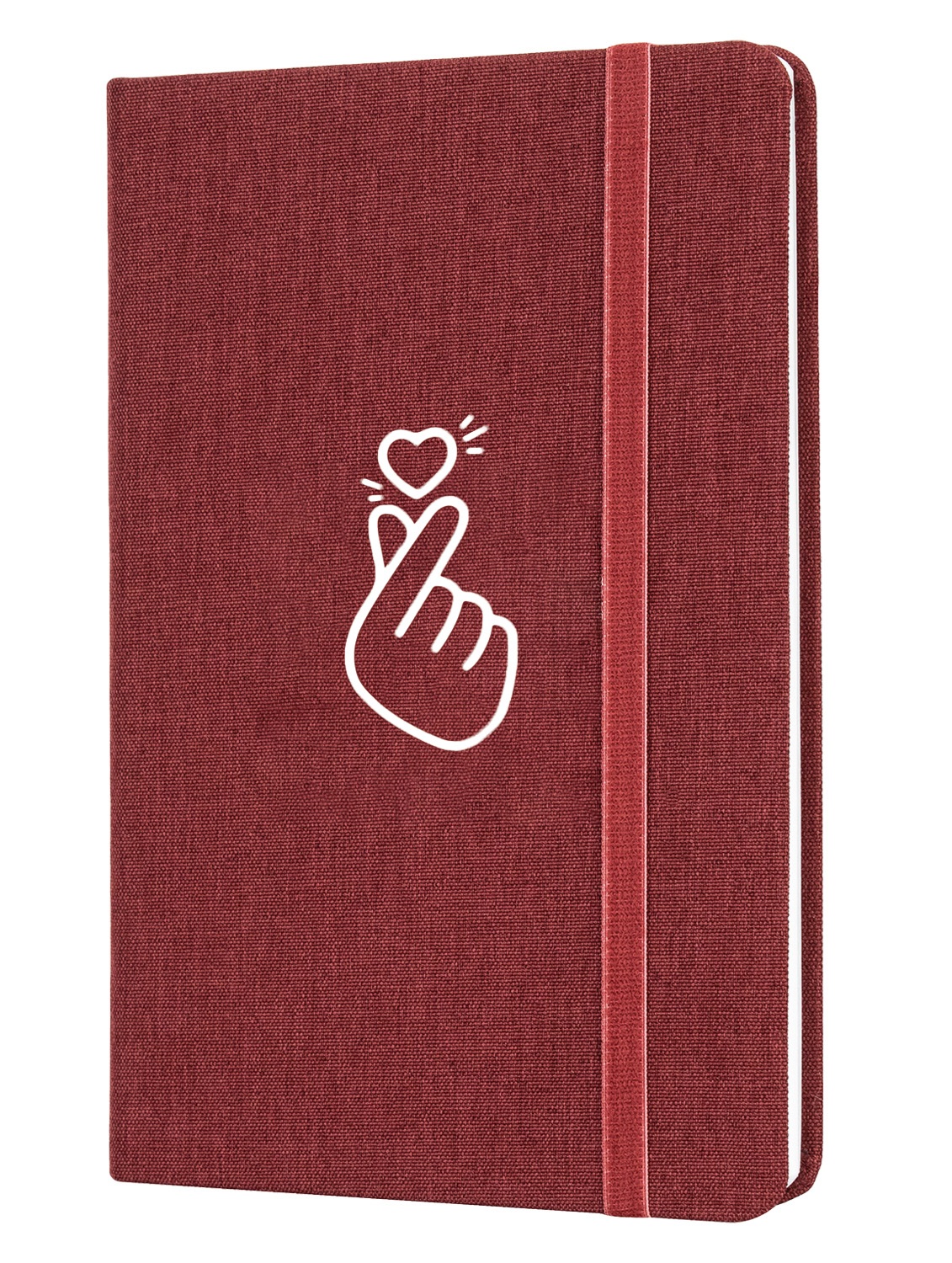 Užrašų knyga HEART, Optima, A5, 128 lapai, 70gsm, langeliais, su skirtuku, vokeliu ir gumele, vyšninės sp. viršelis dengtas tekstile
