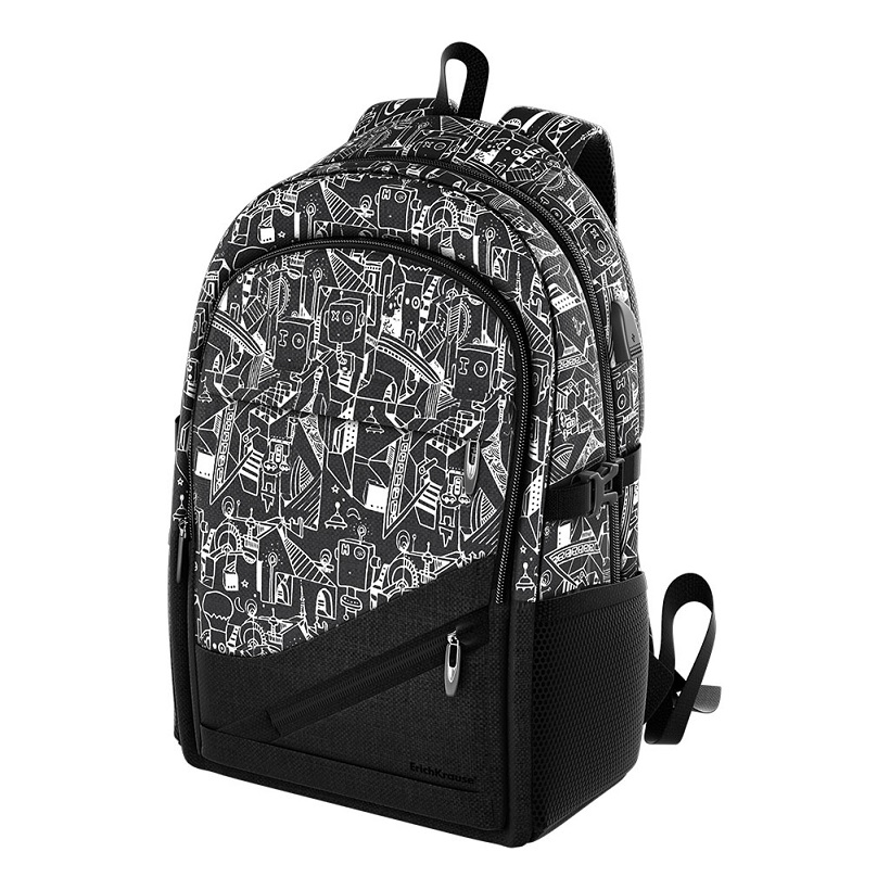 • su 2-jomis kišenėlėmis šonuose vandens buteliukui, gertuvei, skėčiui ar kt.;