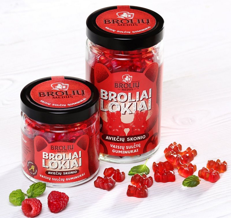 - prisirpusių aviečių sultys - suteikia guminukams gaivų, švelniai rūgštų uogų skonį: