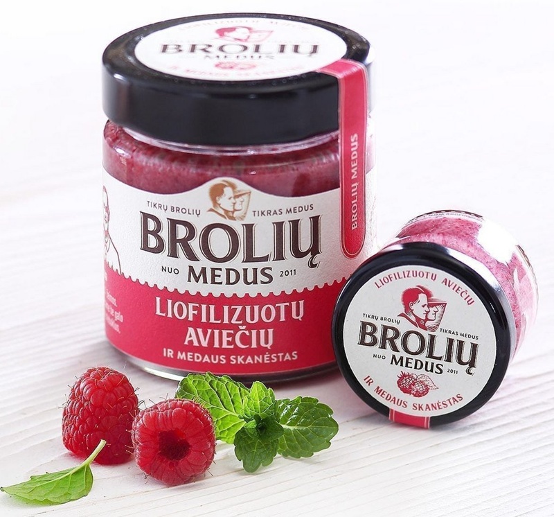 - 200 gramų medaus su liofilizuotomis avietėmis;