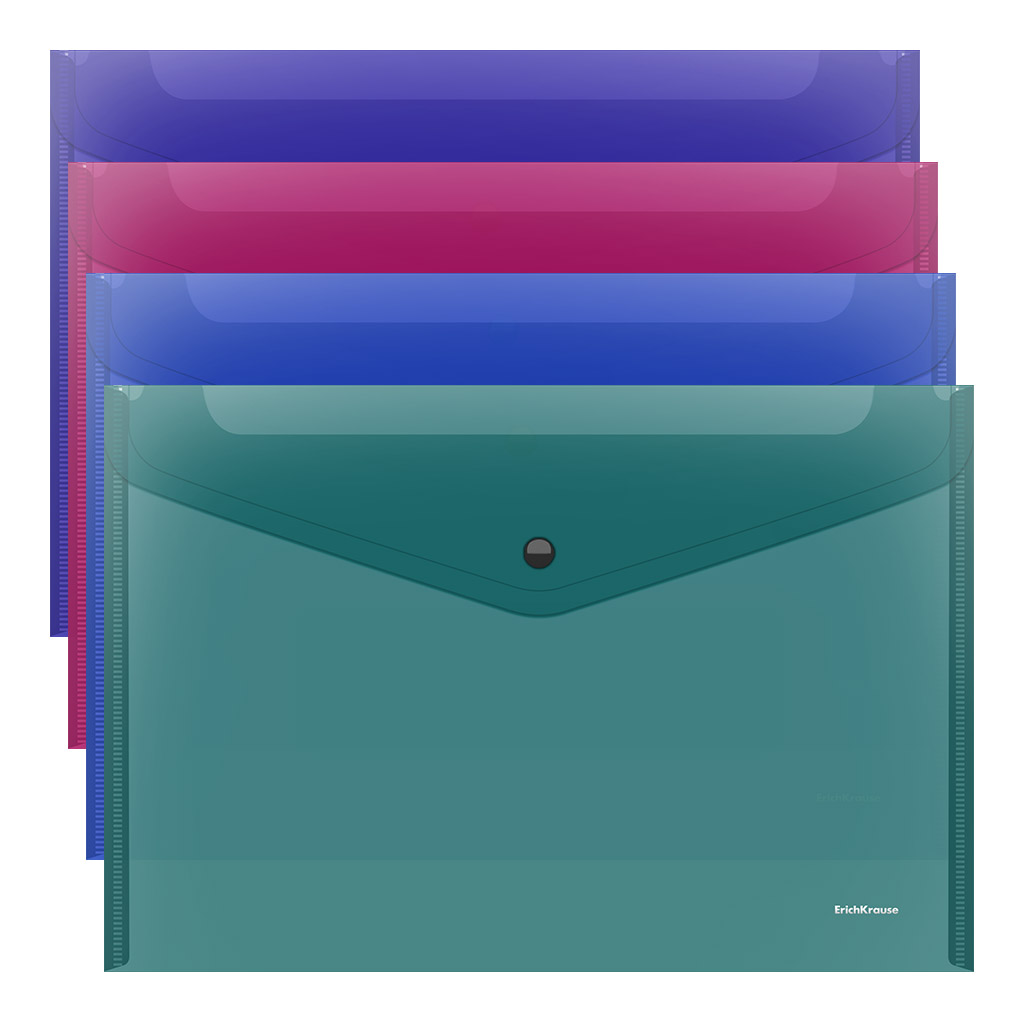 Plastikinis vokas su spaustuku GLOSSY VIVID, ErichKrause, A3, 180mkr, permatomas, 4 sp.