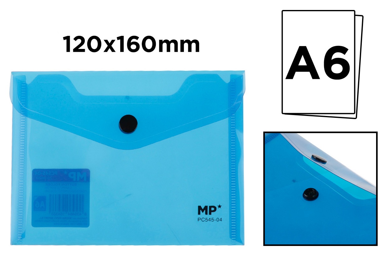 Plastikinis vokas su spaustuku MP, A6, 260 mkr, permatomas, mėlynos sp.