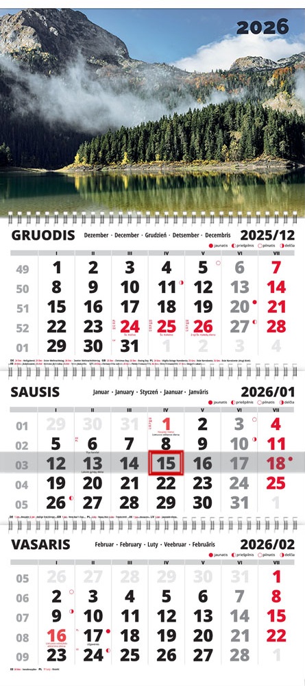Sieninis pakabinamas kalendorius TRIPLE „Kalnai“, 310x750mm, trijų dalių, 2026 m.