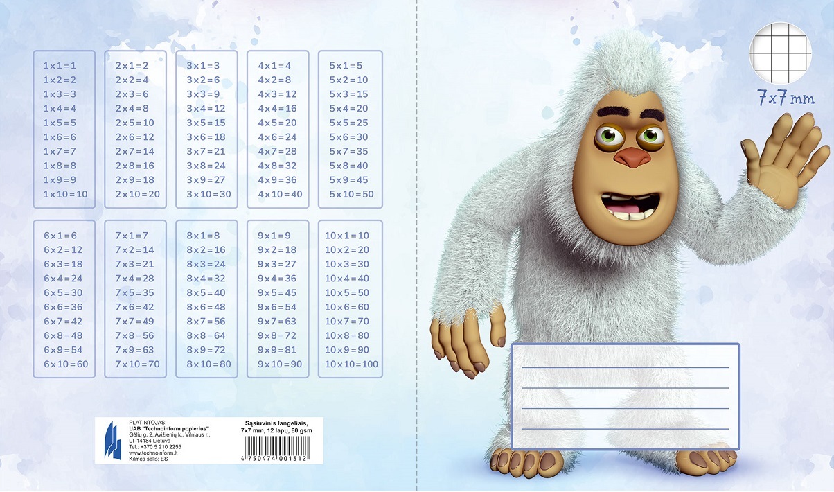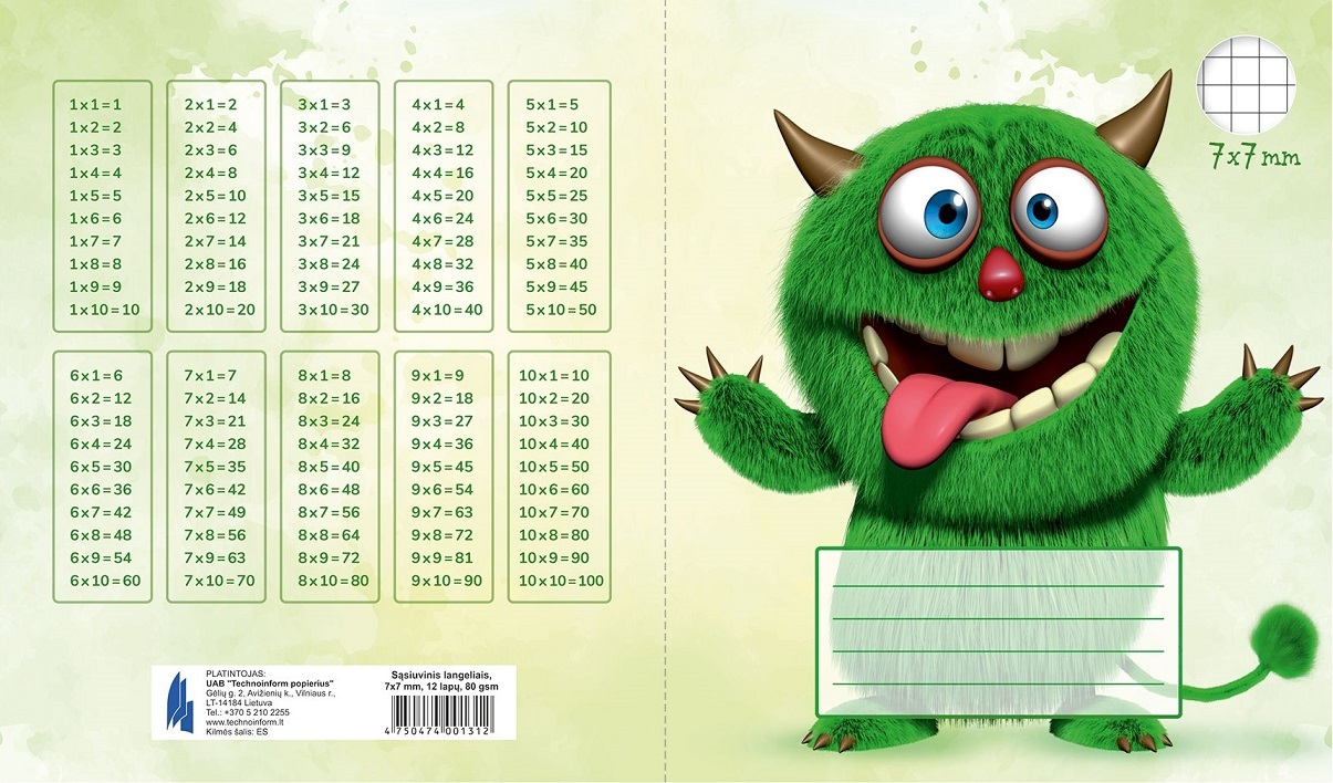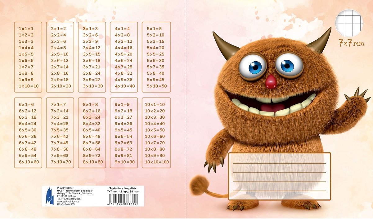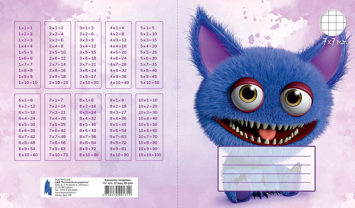 Sąsiuvinis 1 klasei, A5, langeliais (7x7mm), 12 lapų, 80gsm