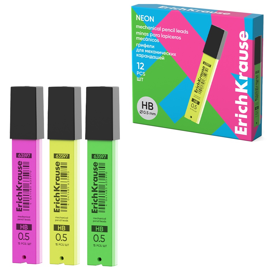 Grafitai automatiniams pieštukams NEON, ErichKrause, 0.5mm, HB, 15 vnt.