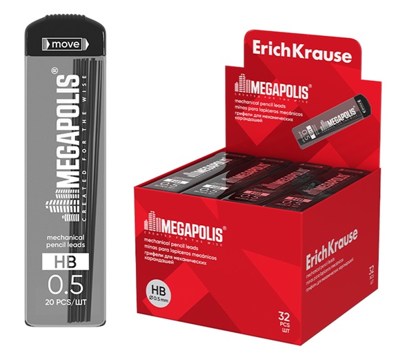 Grafitai automatiniams pieštukams MEGAPOLIS CONCEPT, ErichKrause, 0.5mm, HB, 20 vnt.